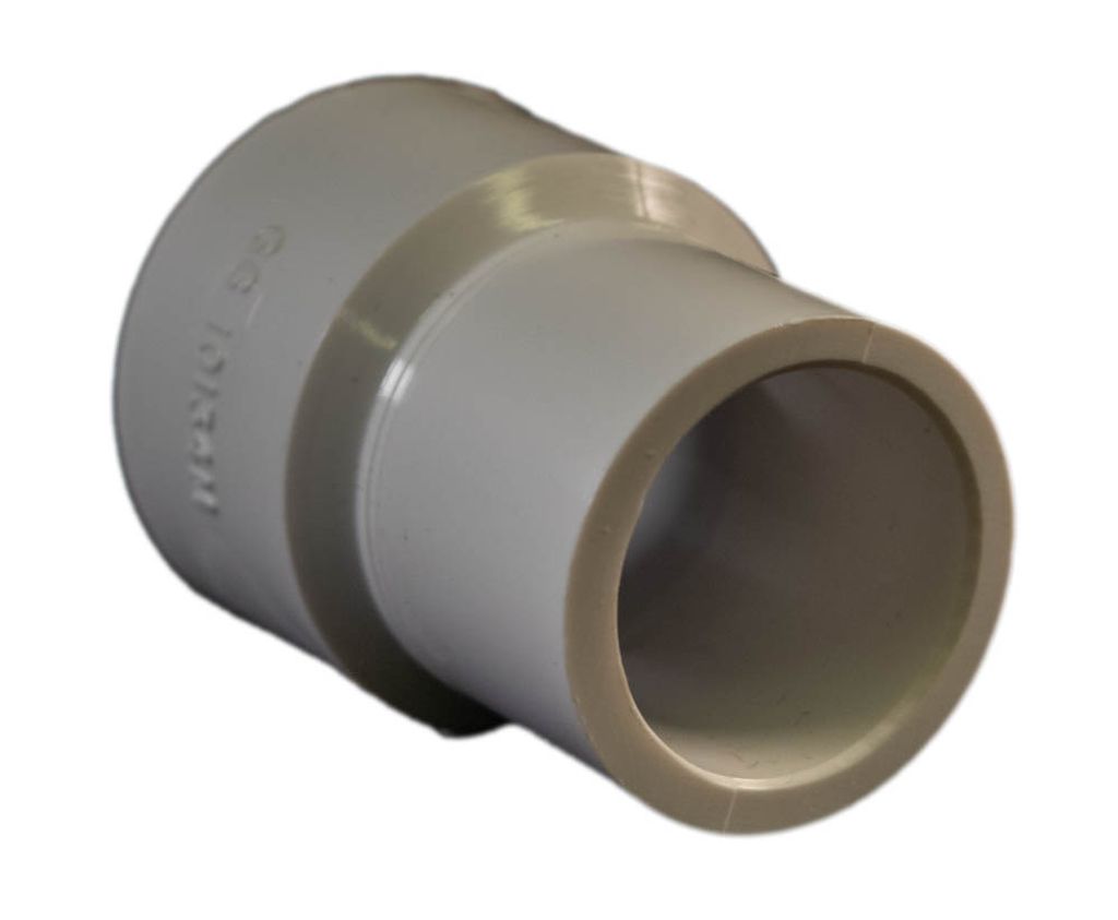 Denna högtrycks-PVC-hylsaadapter låter dig anpassa ditt rörsystem från imperial till metriskt med en 1" hankoppling (33 mm ytterdiameter) på ena sidan och en 32 mm hylsa på den andra.