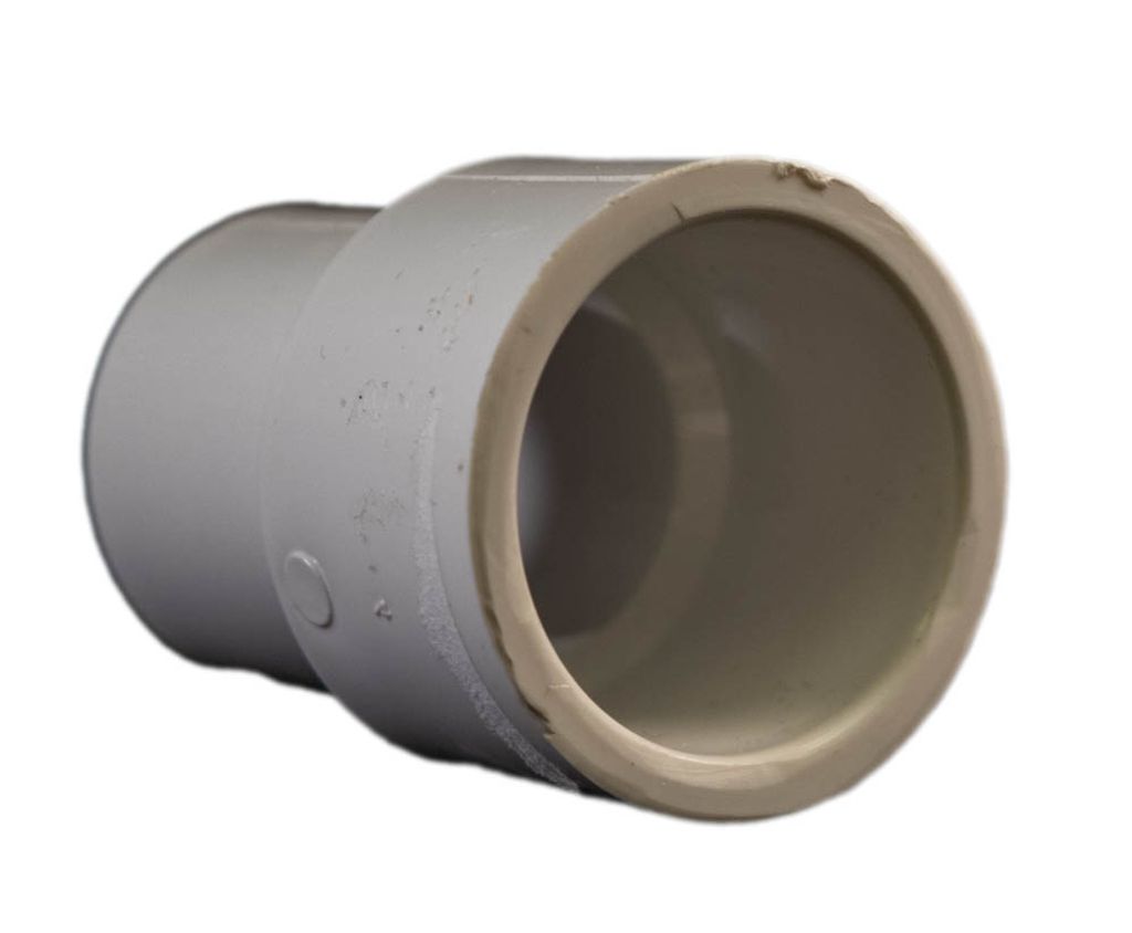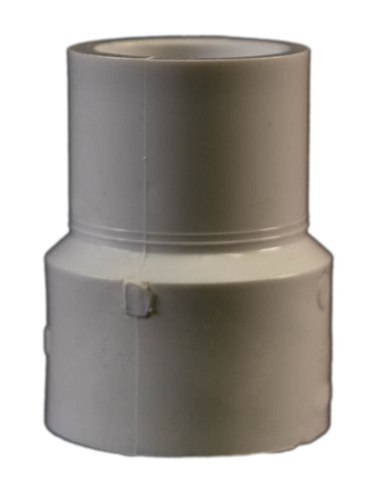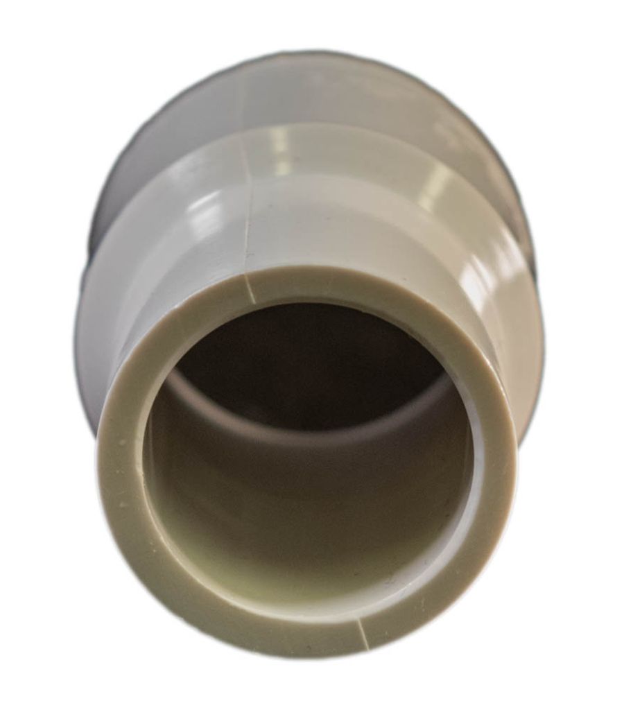 Den här adaptern har en 1-tums hankoppling, som kräver en 1-tums honanslutning (som en rak koppling eller en armbåge) innan ett 1-tums rör sätts in, och en 32 mm honkoppling på den andra, i vilken en 32 mm röret sätts in.