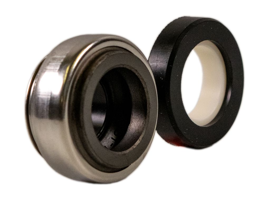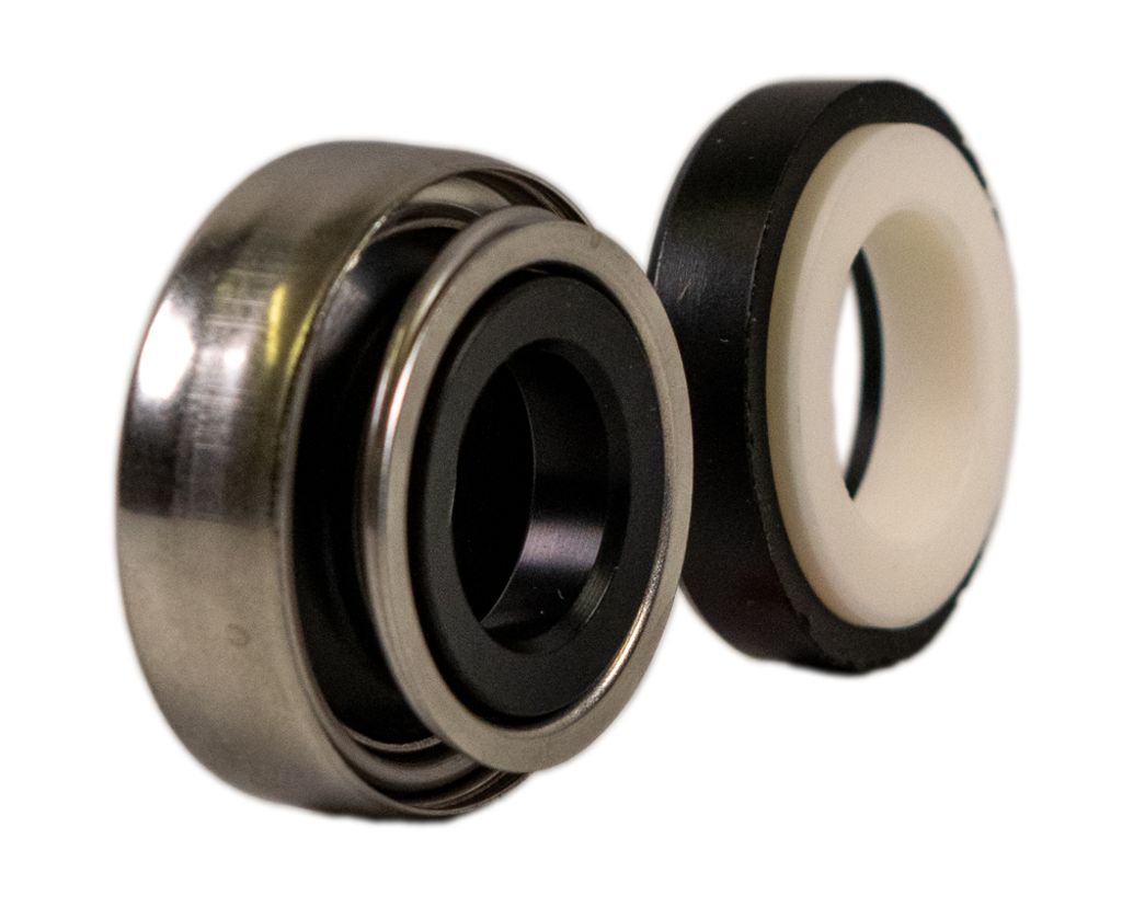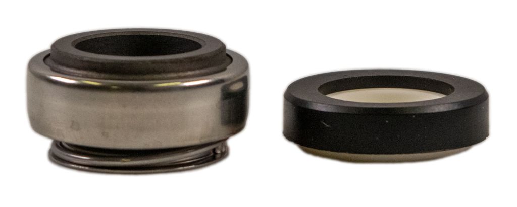 Denna tätning säkerställer att vattnet inte läcker ut ur pumpens våta ände, längs motorspindeln. Den finns i två delar: en monteras på den pumphuset och den andra går in bakom pumphjulet.