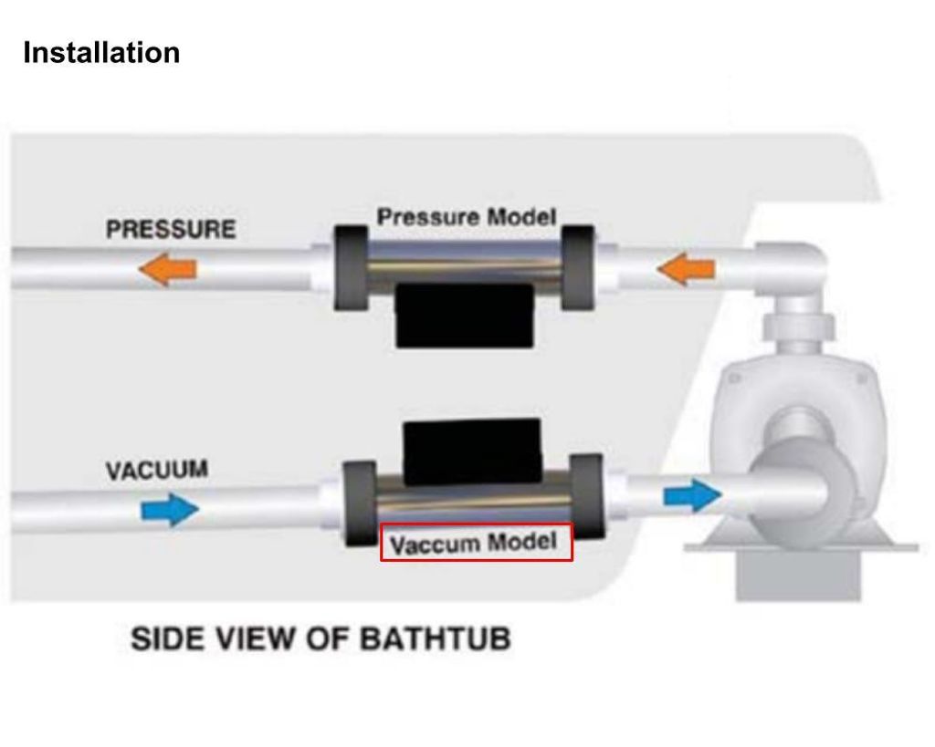 Denna värmare måste installeras på sugsidan av pumpen för att aktivera vakuumbrytaren.