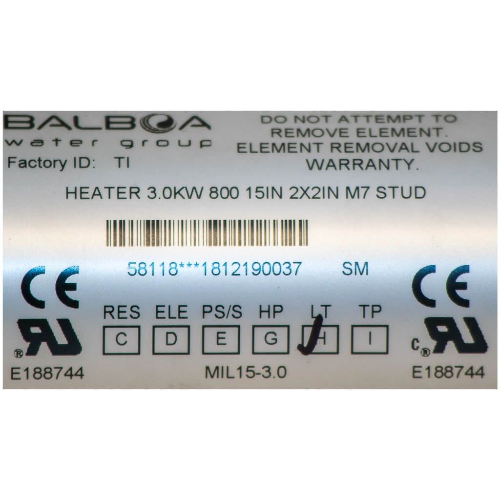 - Värmeleement, 3.0kW, 800 Incoloy, Balboa original