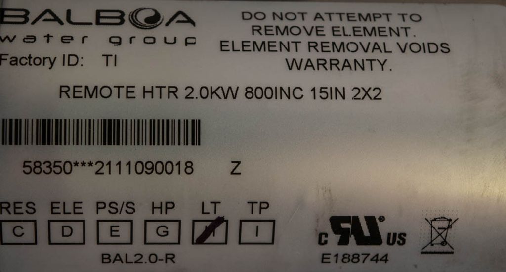 Denna värmare är kompatibel med kontrollsystemet GS100 Balboa. Den finns i 2 kW och 3 kW versioner.