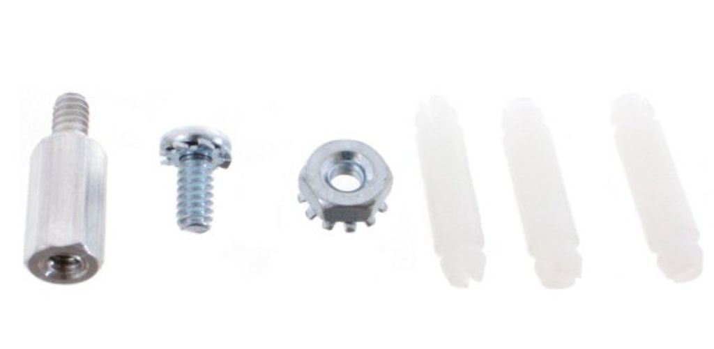 Detta kit låter dig montera expansionskort i Balboas styrsystem. Den består av tre plastklämmor, en metalldistans och en liten bult.