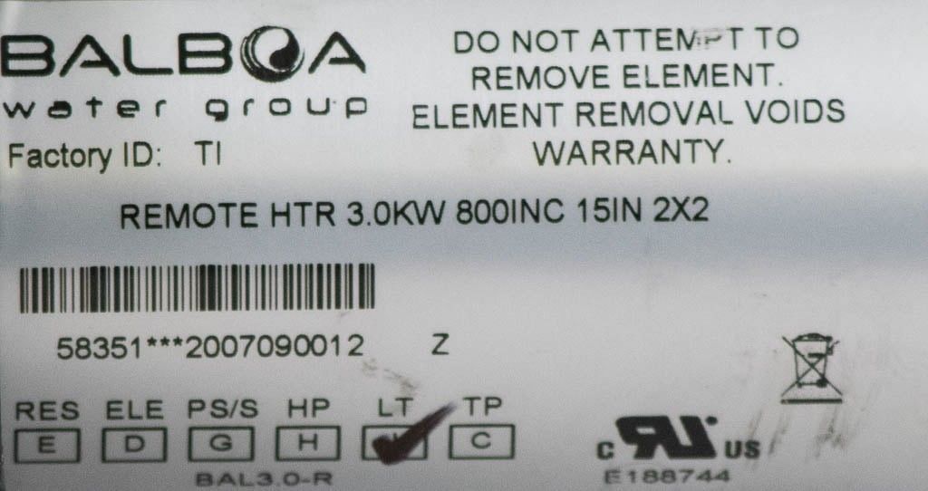 Beskrivning av Balboa värmare GS100 3.0kW, 15x2 tum, 58351