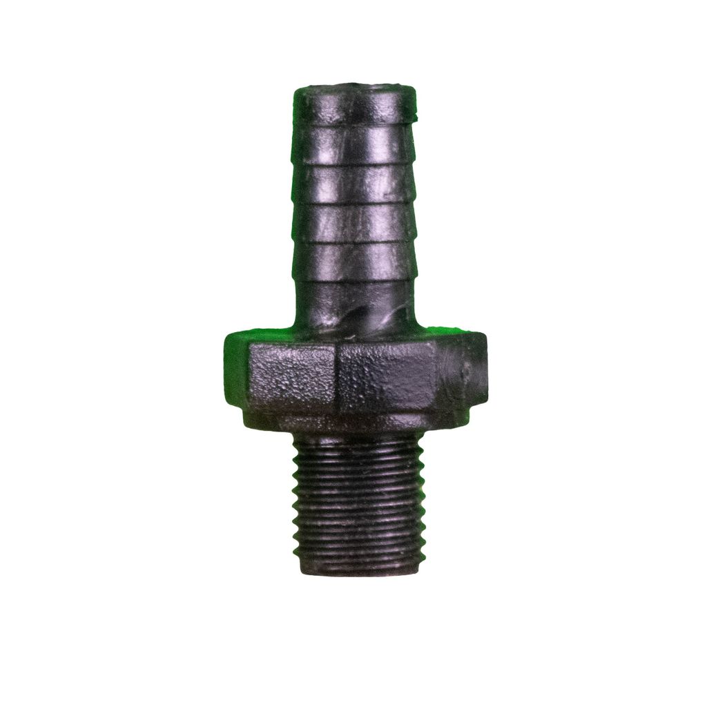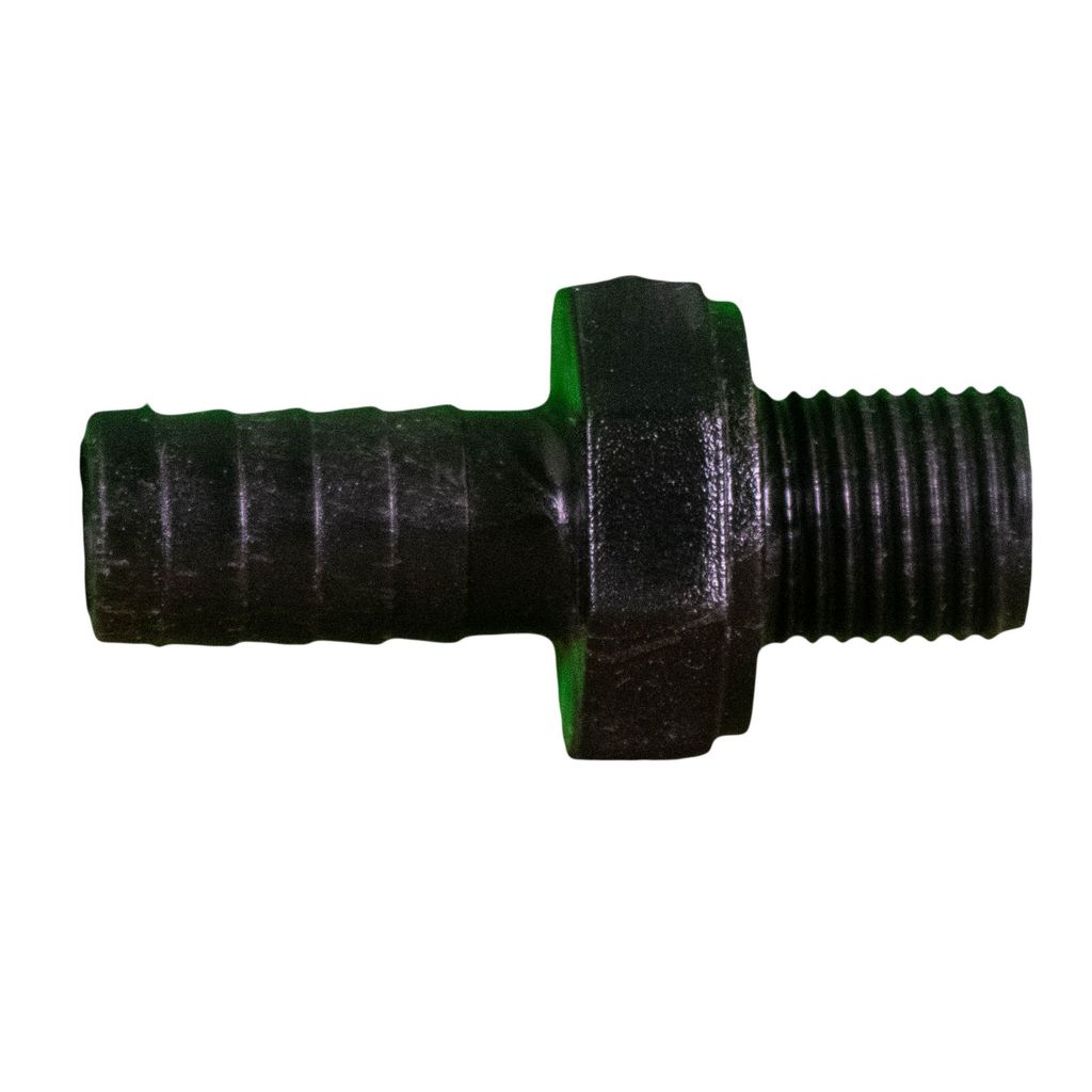 Beskrivning av Gängad nippel, 3/8", ca 12.3 mm YD över gängorna och slanganslutning ca 10 mm YD, passar till bland annat Waterway och Aqua-Flo