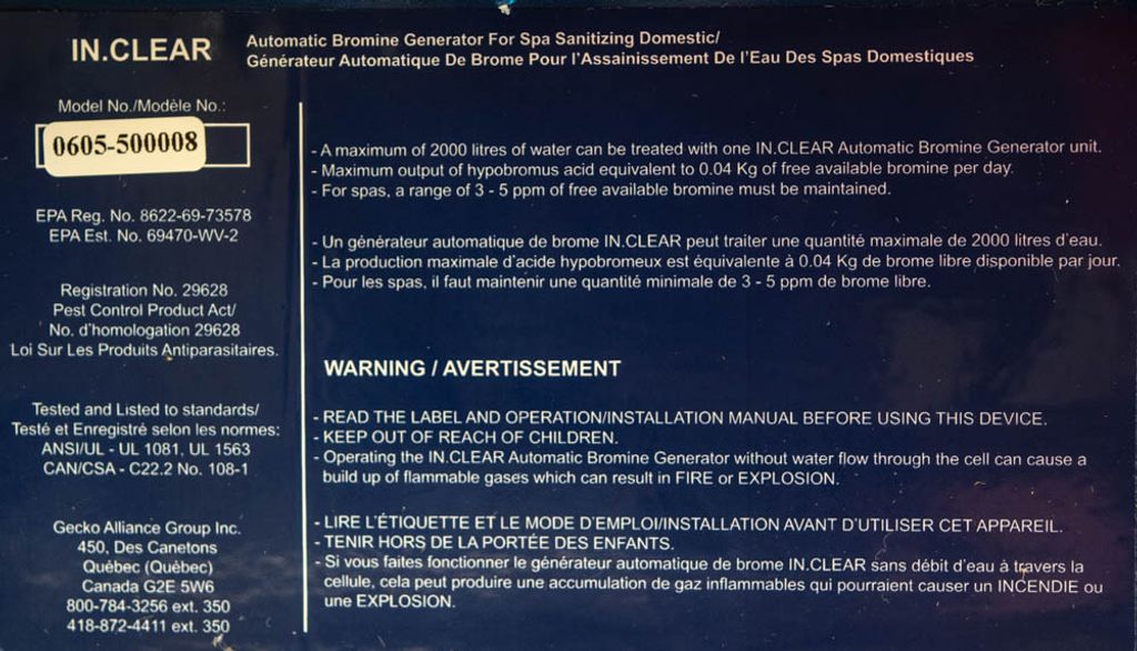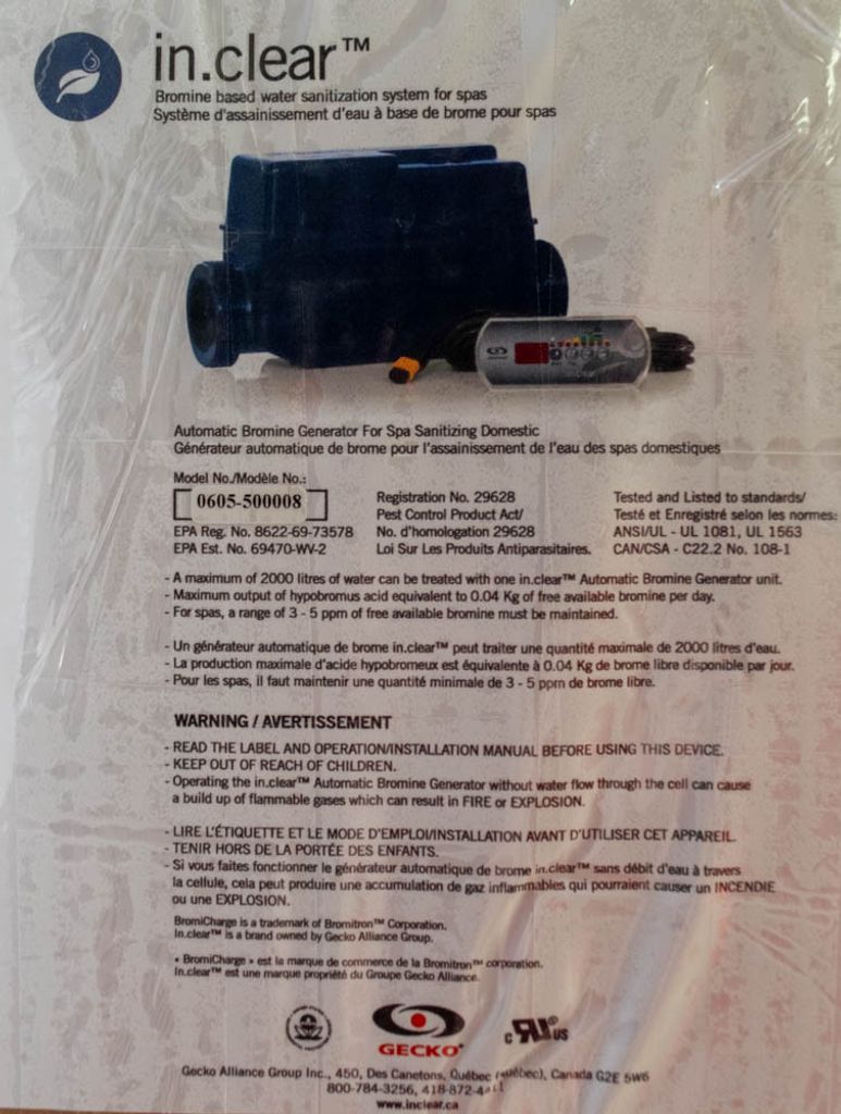 In.clear genererar och släpper ut brom i spavattnet och förstör snabbt alla mikrobiologiska föroreningar som vattenburna bakterier, alger och organiskt material som avges av spabadare.