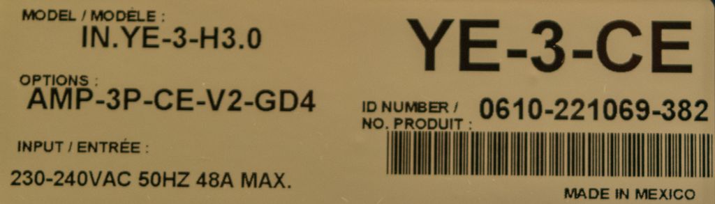 Elförsörjning: 230V, 50Hz. Systemet levereras för trefasförsörjning. Kontakta oss om du behöver en enfasförsörjning.