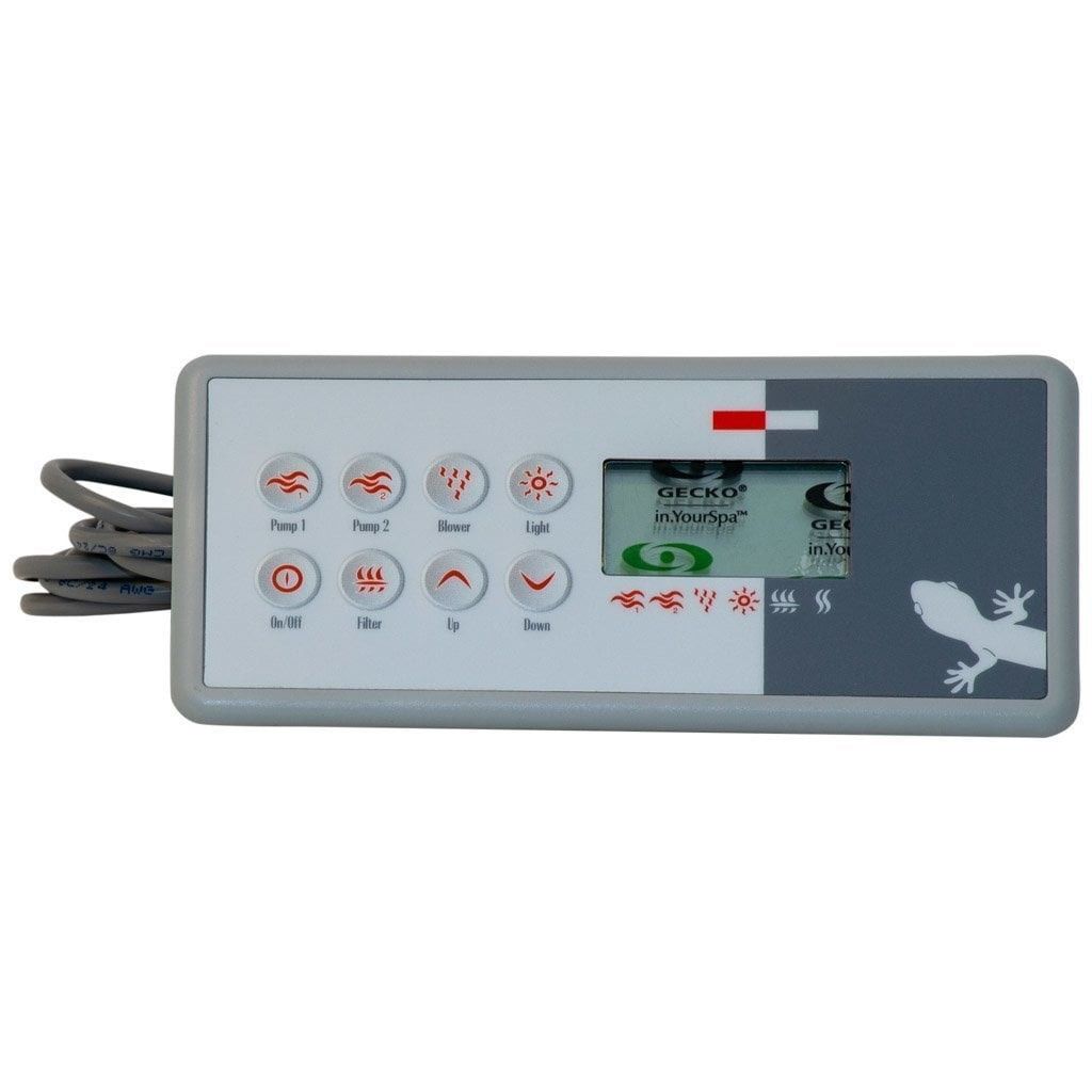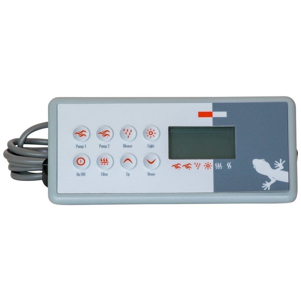 Beskrivning av Gecko Aeware K8 Styrpanel - Pump 1, Pump 2, Blower, Light, On/Off, Filter, Up, Down