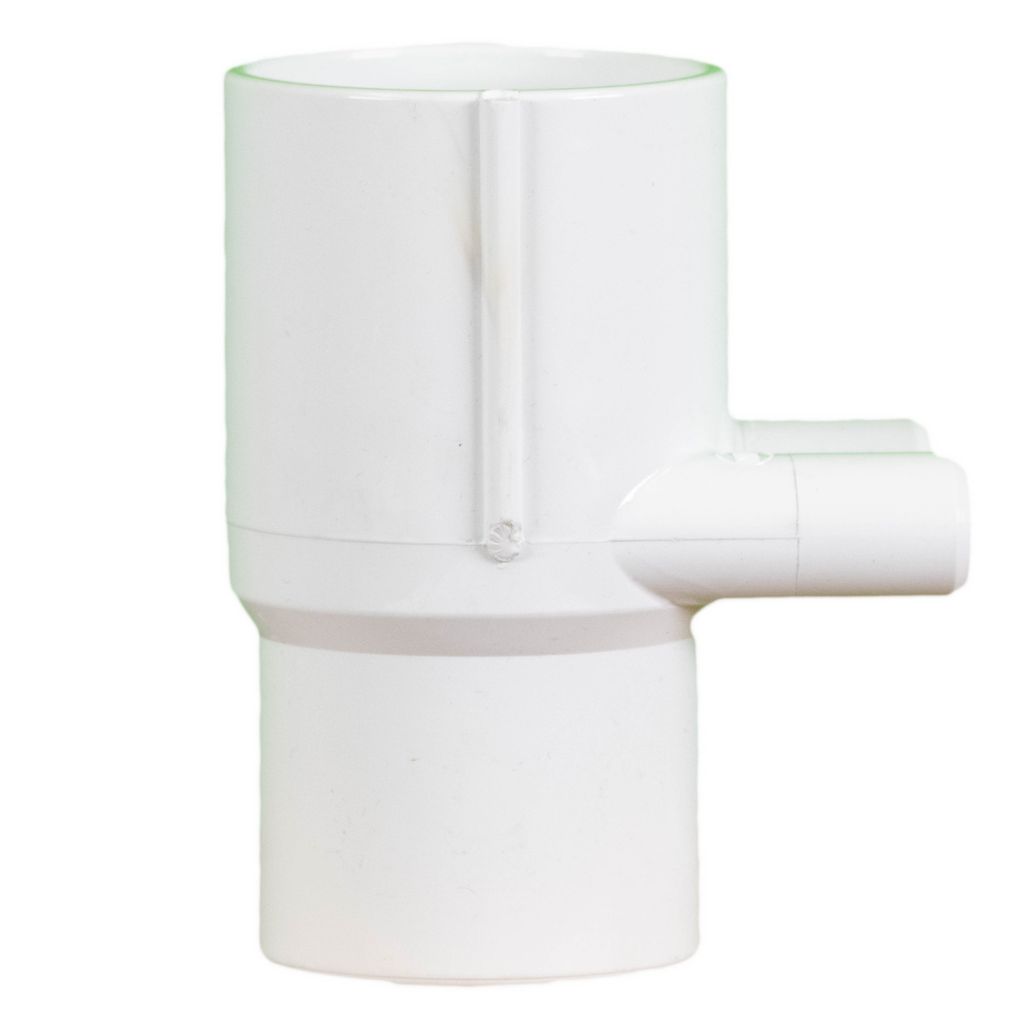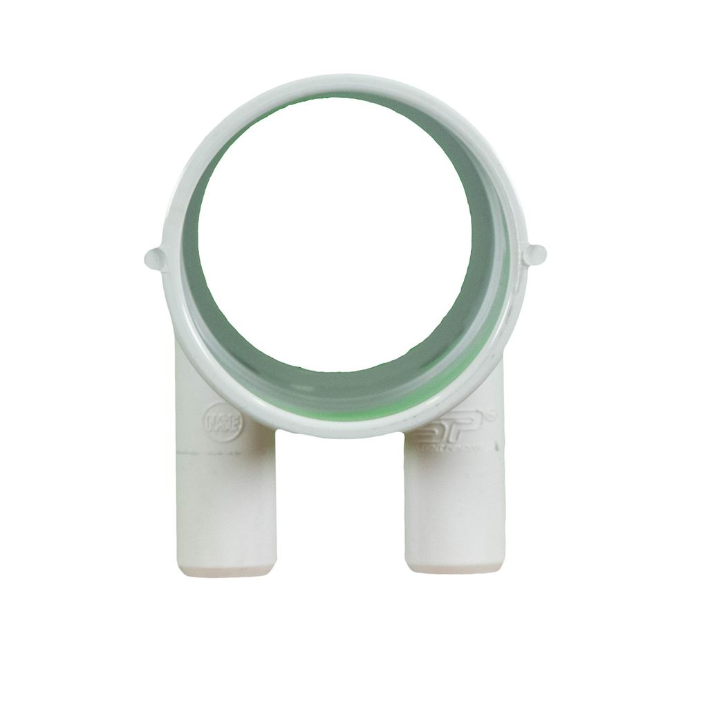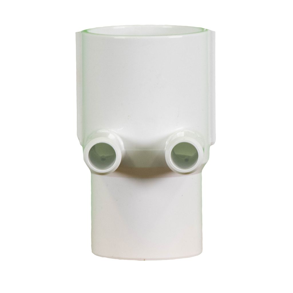 Detta ABS-grenrör används för att ansluta pumprören till vatten- eller luftstrålerören. Den har ett 2-tums han- och 2-tums honinlopp och två släta utlopp för att ansluta till 3/4-tums rör.