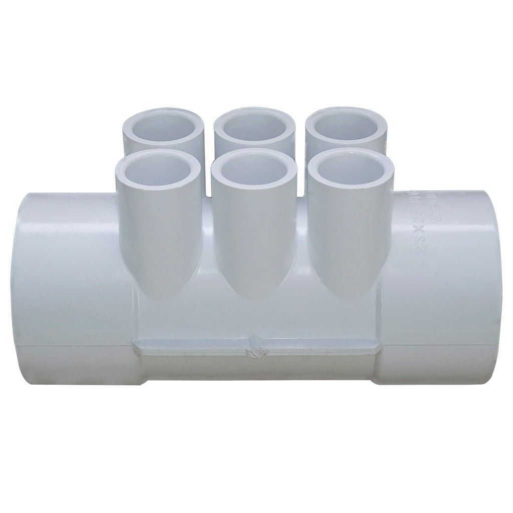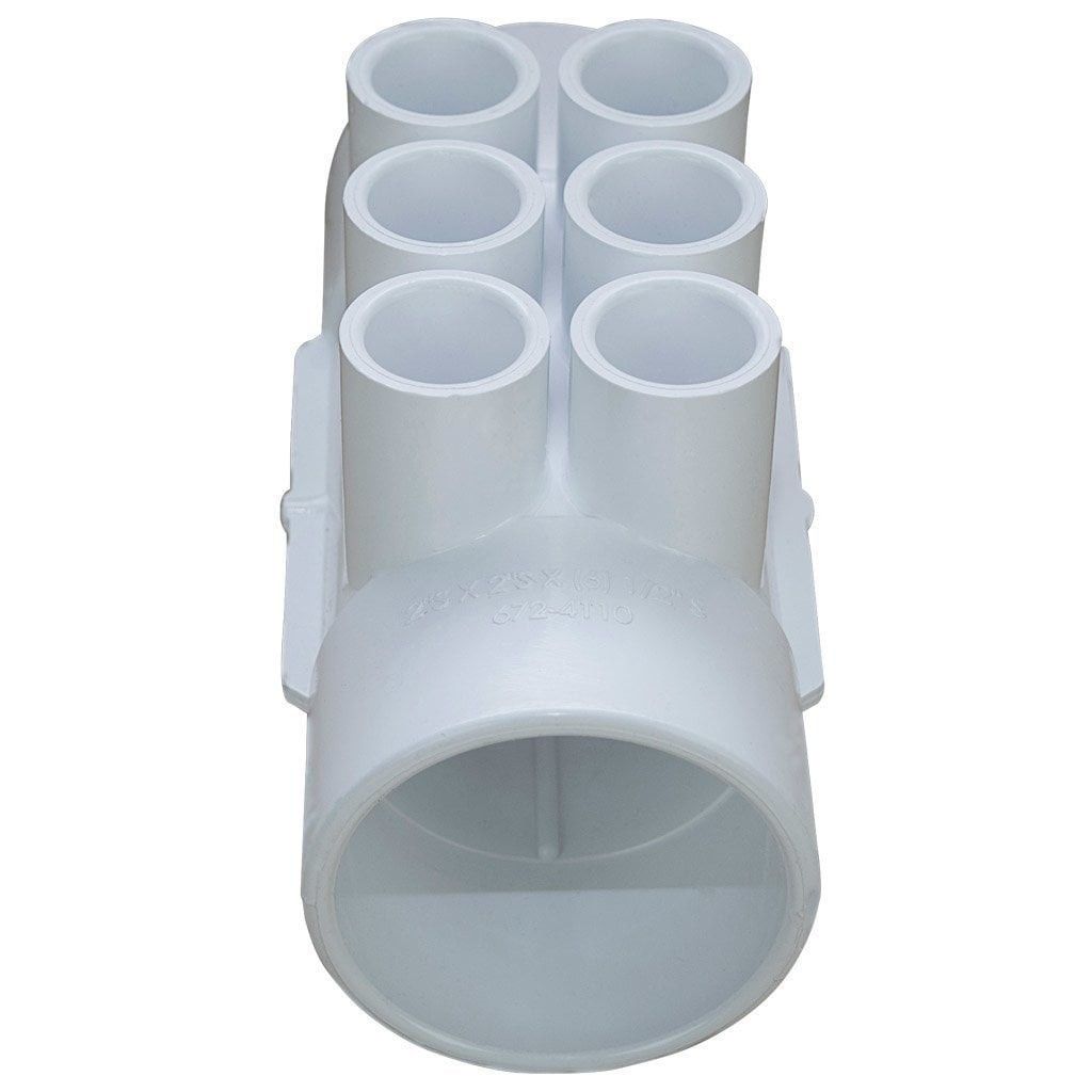 Beskrivning av Grenrör 2x 2 tum (ho-ho) till 6x 1/2 tum (ho) ID 60.5 mm och ID 21 mm. Kan vara märkt med "Waterway 672-4110".