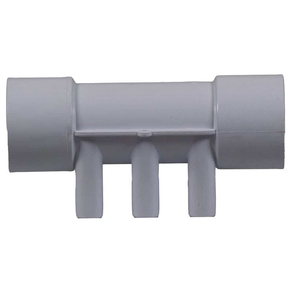 Detta ABS-grenrör används för att ansluta pumprören till vatten- eller luftstrålerören. Den har två släta honinlopp för 2-tumsrör och sex räfflade hullingutlopp för 3/4-tumsrör.