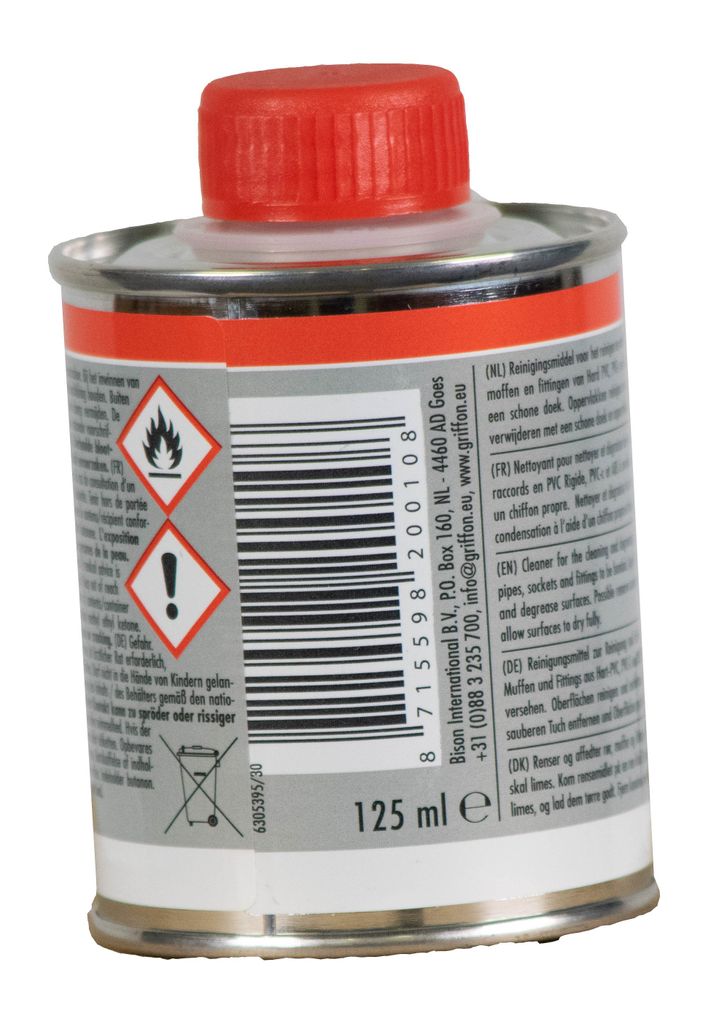 Beskrivning av Griffon Cleaner för PVC, PVC-C & ABS, rengöring inför montering av rördelar, 125ml