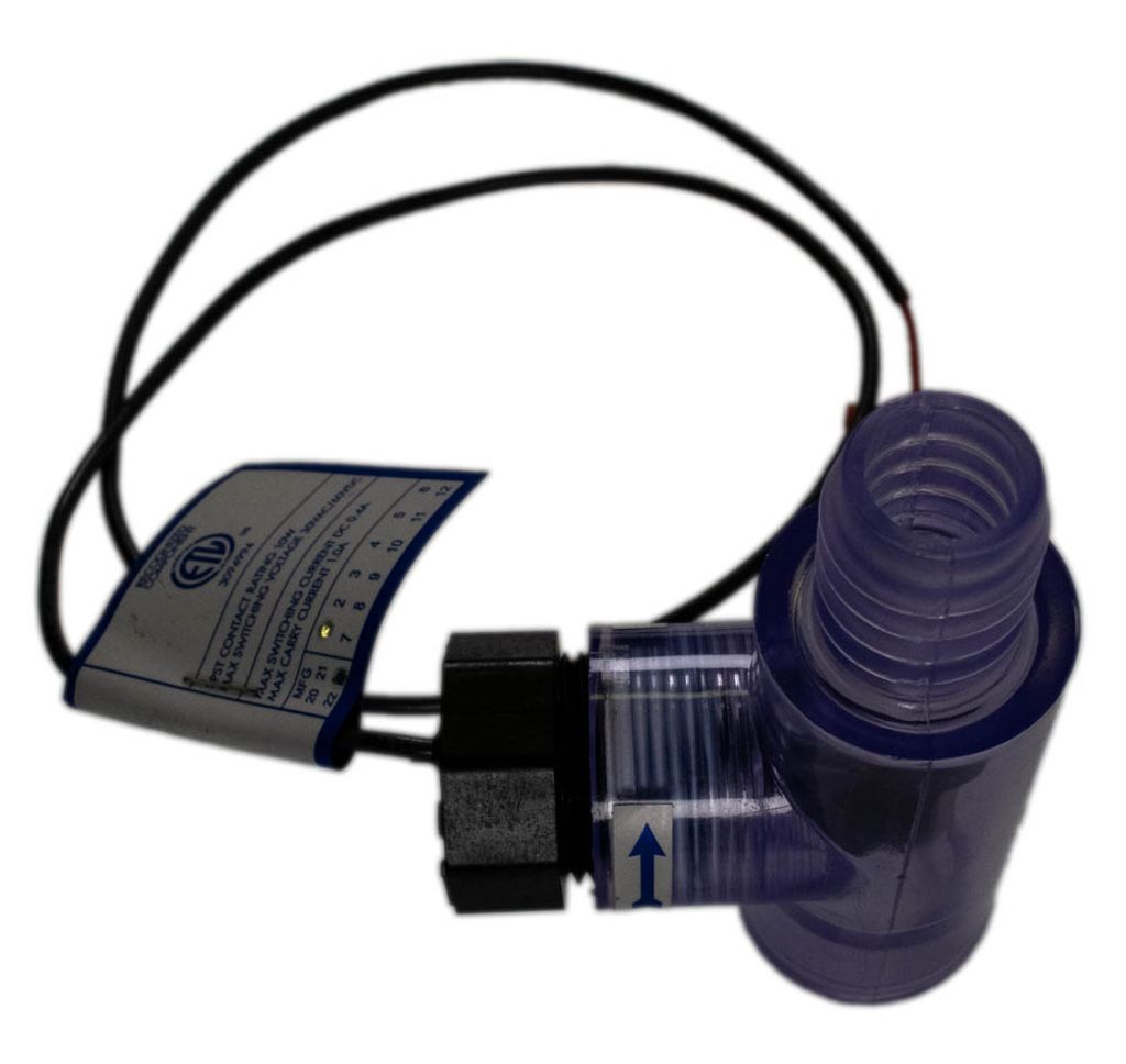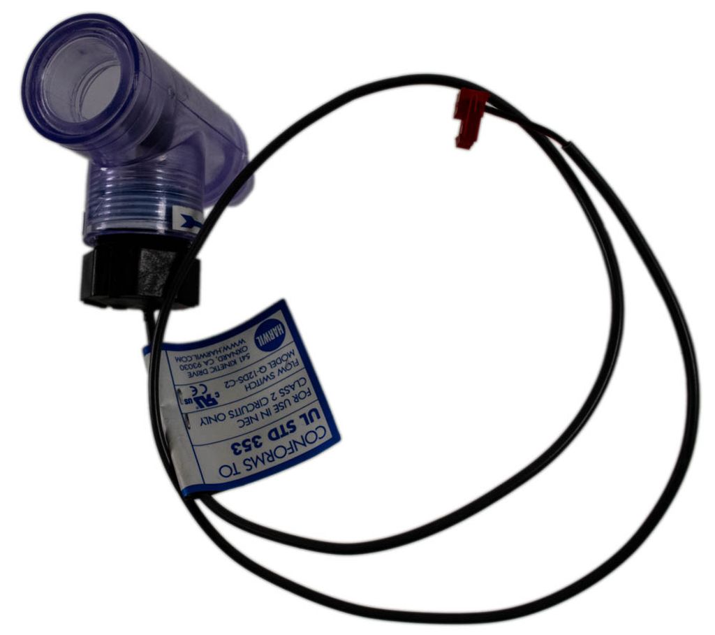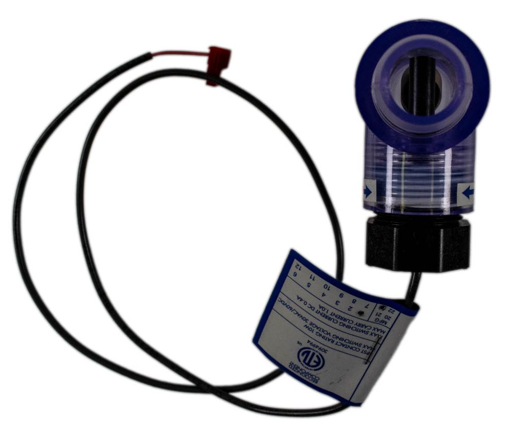 Denna flödesbrytare finns vanligtvis i Dimension One-badtunnor. Den ser till att cirkulationspumpen skickar tillräckligt med vatten in i värmaren för att undvika risk för överhettning. Om flödet är tillräckligt fastnar magneten på sensorstaven och flödesinformationen skickas till styrsystemet.