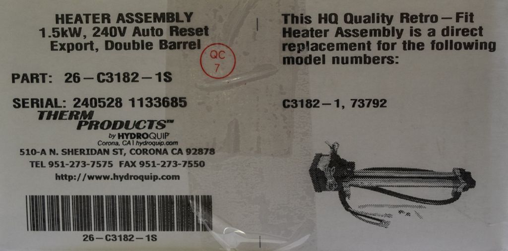 Ersättare värmare i Hot Spring bad gjorda efter 2003. Det finns två varianter, med flödesvakt och utan flödesvakt.