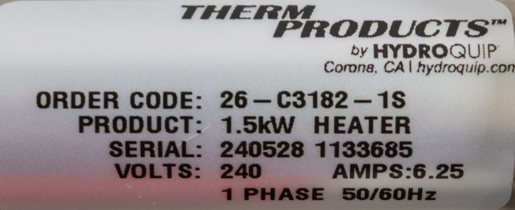 Beskrivning av HydroQuip 1.5 kW värmare