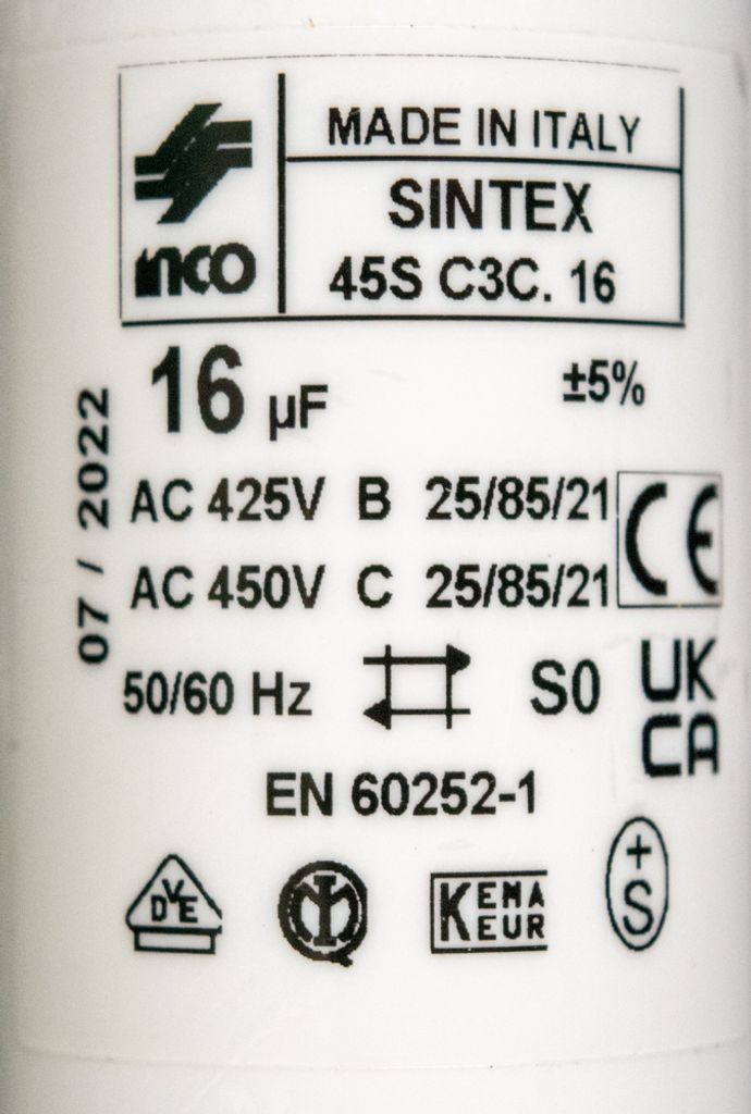 Kondensator 16µF (med sladd), Diameter 35 mm, Längd 69 mm