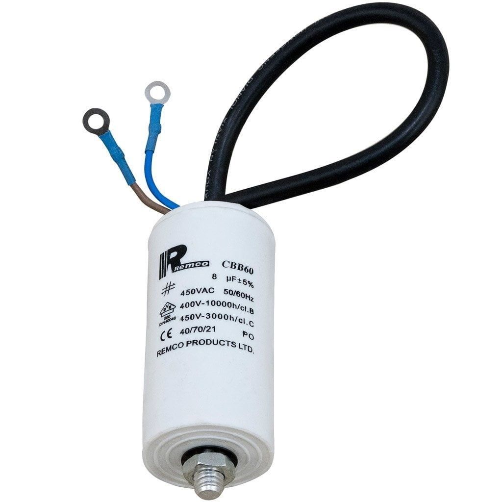 Beskrivning av Kondensator 8µF (med sladd)