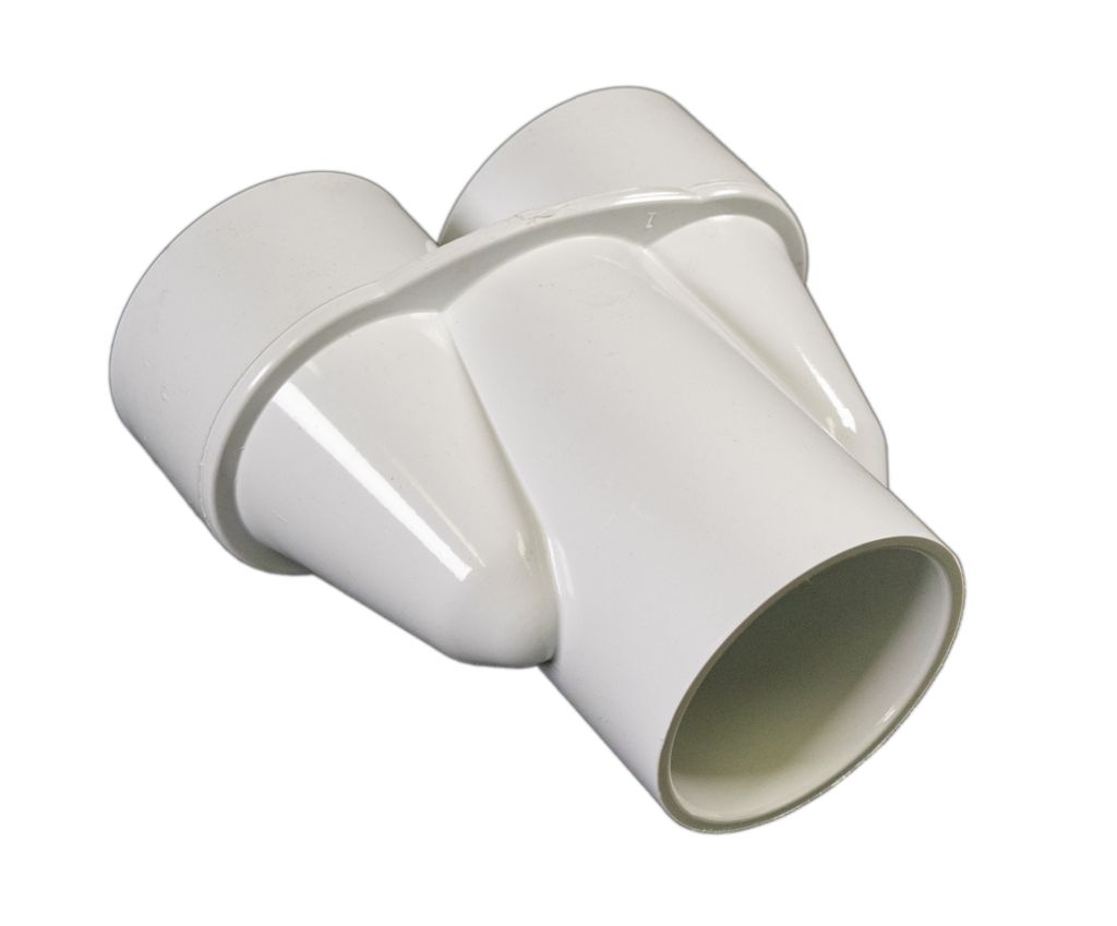 Denna 2-tums tee wye är gjord av resistent vit ABS-plast. Denna Y-formade t-shirt har tre 2-tums honrörsportar. Den är tillverkad av mycket hållbar vit ABS-plast.