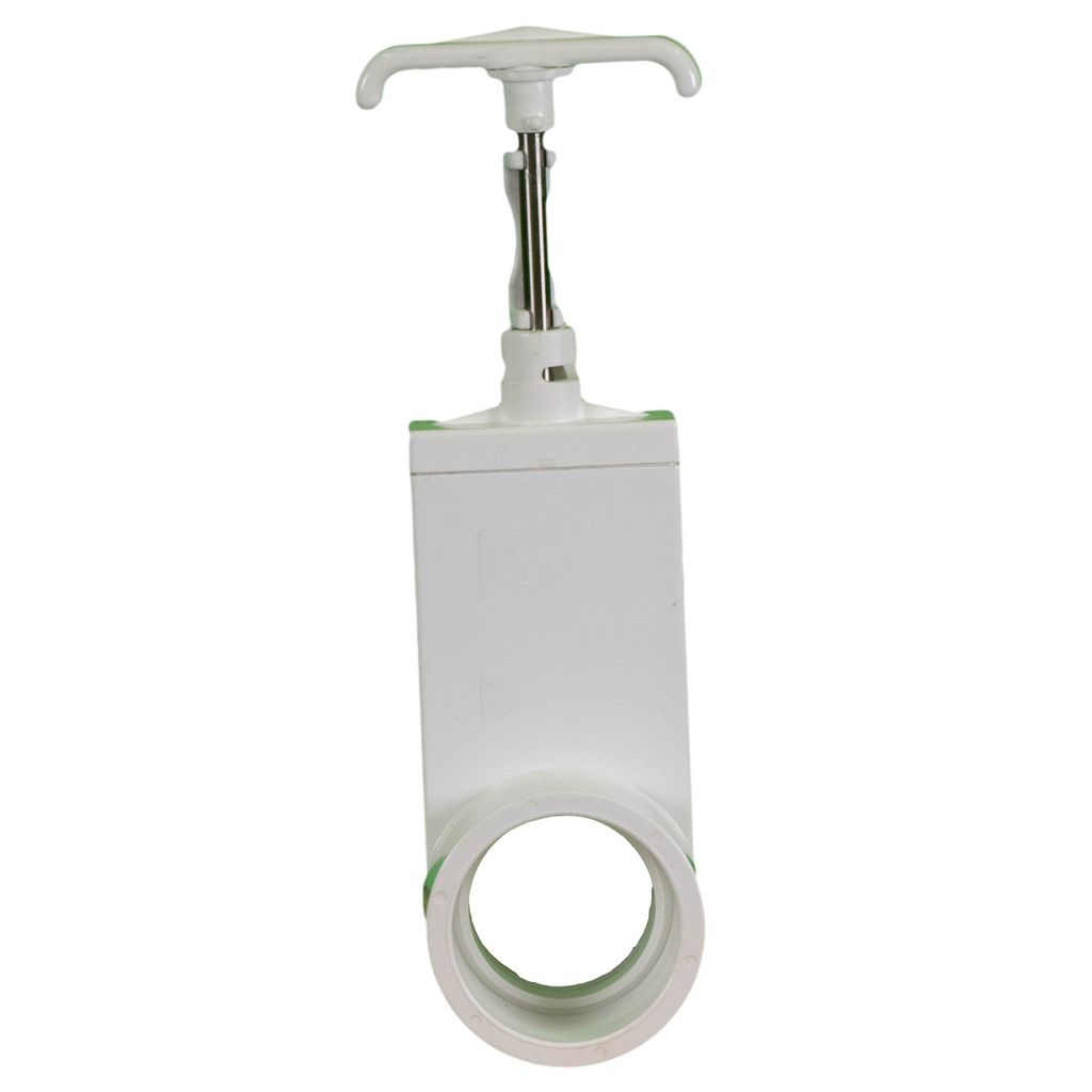 Denna kompakta slussventil har 1,5-tums honslip-fit hylsor. Den är tillverkad av Magic Plastics och tillverkad av högtrycks-ABS.