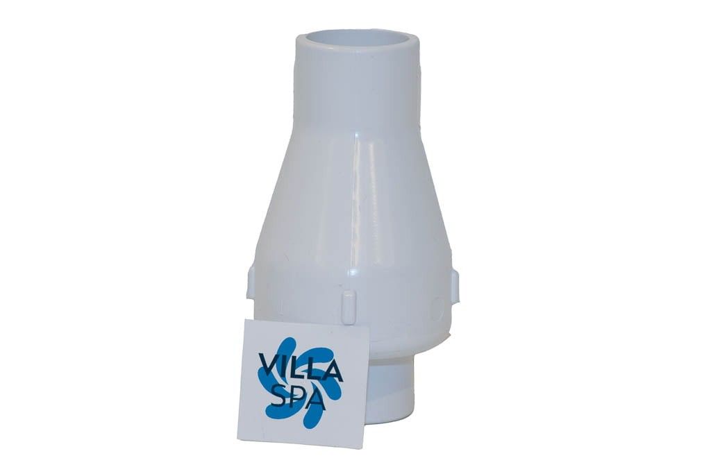 Syftet med en backventil är att säkerställa att vattnet flyter i endast en riktning. Inloppet och utloppet har en innerdiameter på 33 mm, för anslutning av 1-tumsrör.