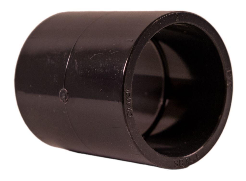 Denna uttagsadapter har ett 1,5-tums honuttag på ena sidan och ett 50 mm honuttag på den andra.