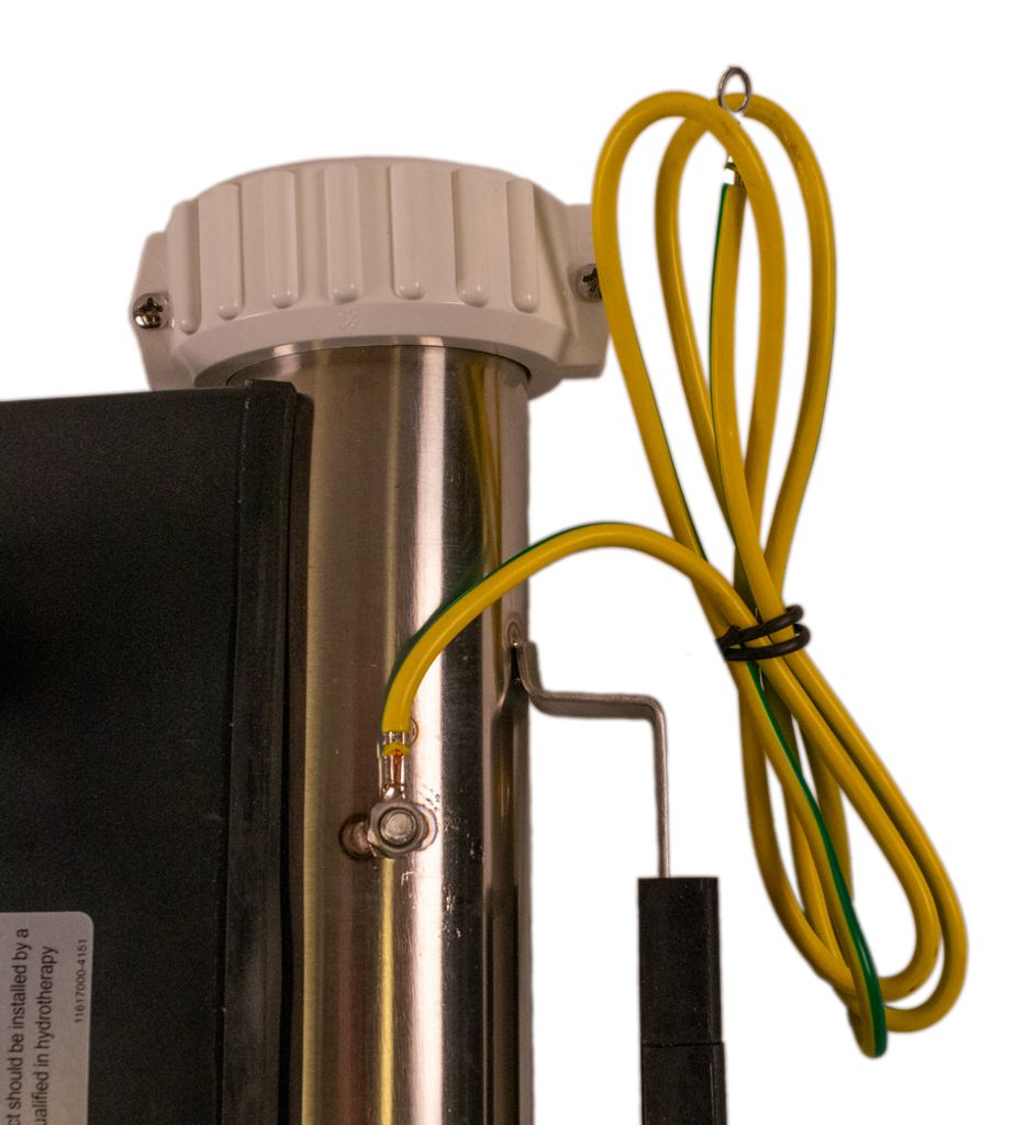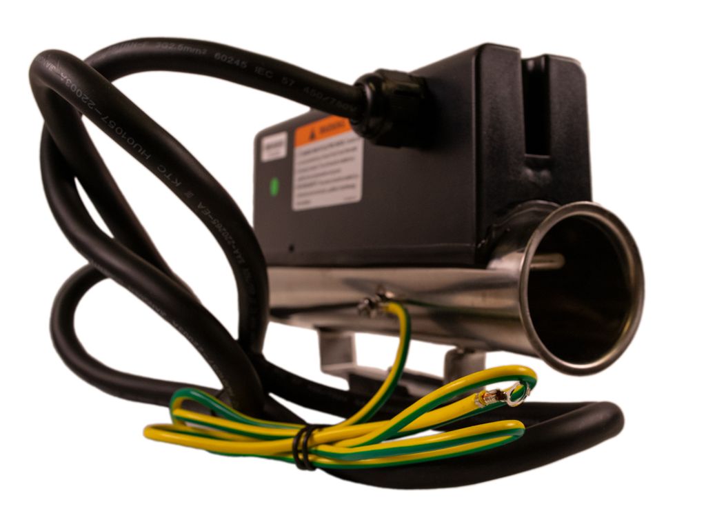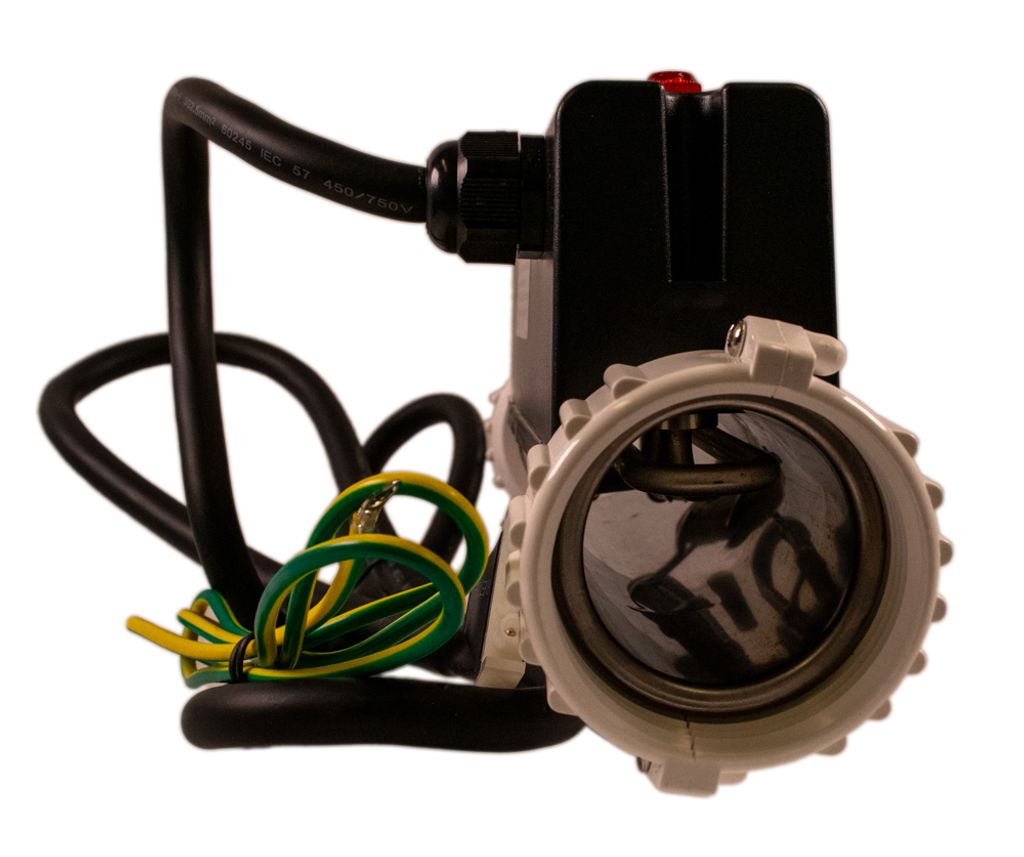 Tryckvakten på 0,035MPa (0,35 bar) är antingen inbyggd i kopplingsdosan på värmaren eller extern (kopplas via sladd till elskåp). Detta val görs vid beställningen! Bilden visar modellen med intern tryckvakt.