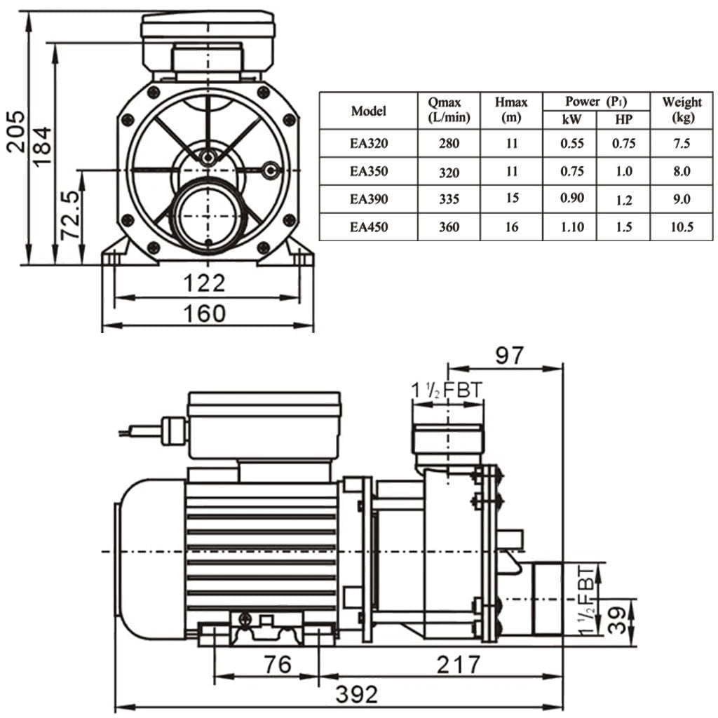 Vi säljer även EA350-versionen av denna pump, med en annan motoreffekt.