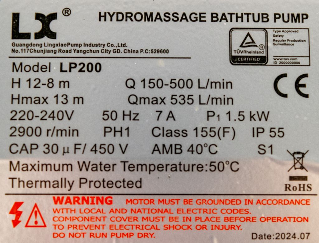 LX Whirlpool LP200 är en enhastighets massagepump för bubbelpool.