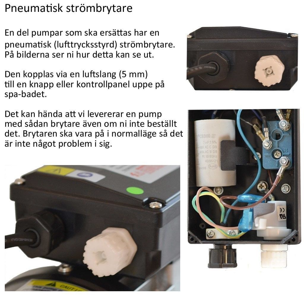 LX Whirlpool LP300 är en mycket vanlig massagepump. LP300T är en 3-fas pump medan LP300 är en 1-fas pump. Pumpen har en motor på 2.2 kW / 3.0 hk.