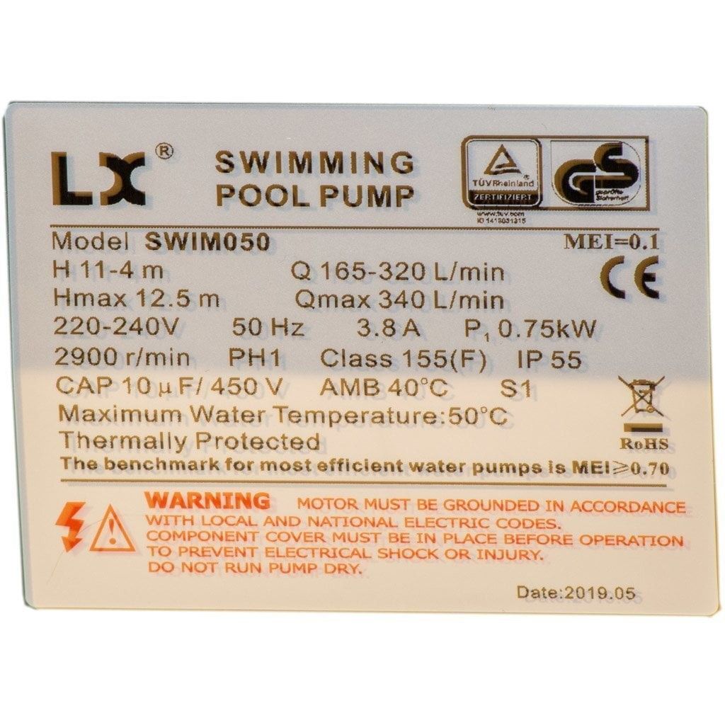 Beskrivning av LX Whirlpool SWIM050 Pool pump, 1.0hk, 1-fas