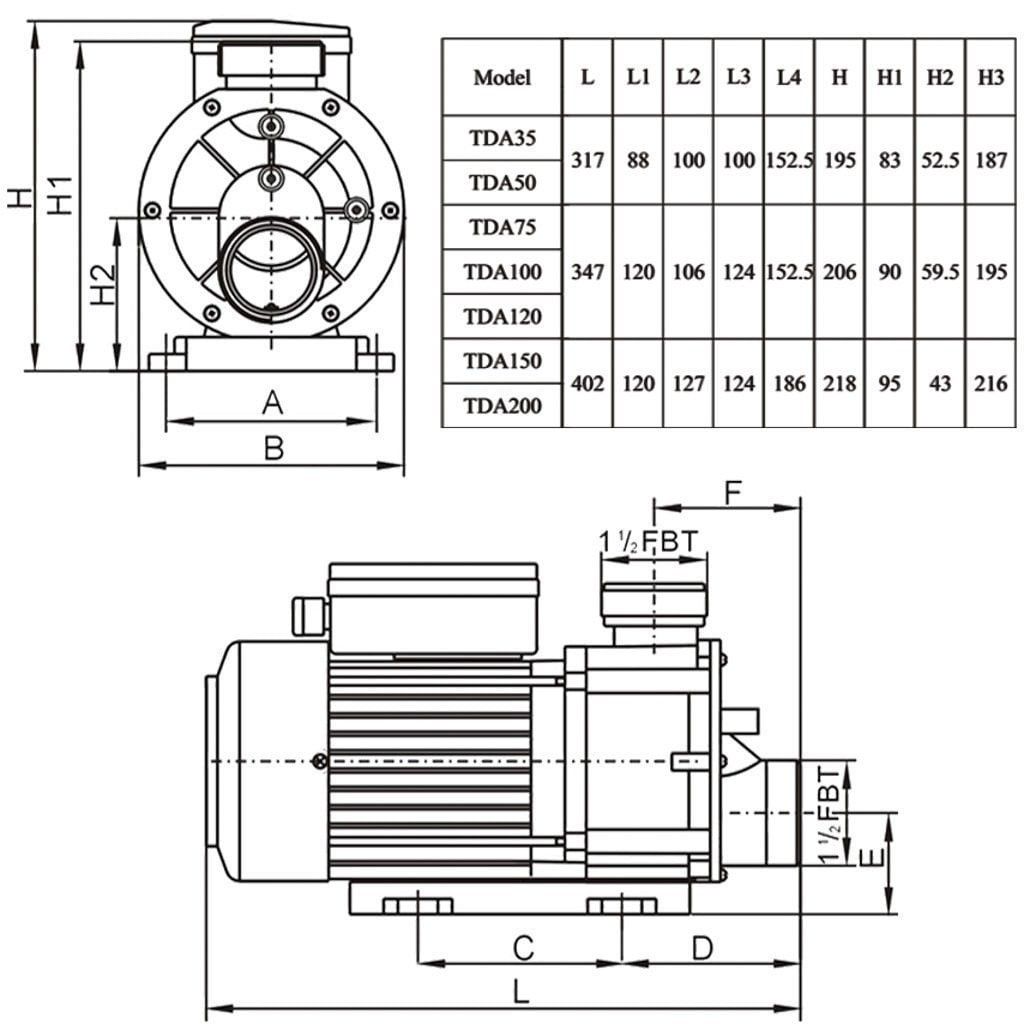 LX Whirlpool TDA200T 380V används normalt som massagepump. Pumpen har en 3-fas motor på 1.5 kW / 2.0 hk.