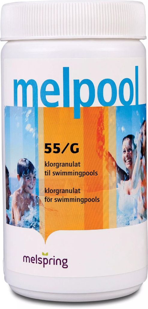 Beskrivning av Melpool Klor, granulat, 55% tillgängligt klor, natriumdikloroisocyanurat, SDIC