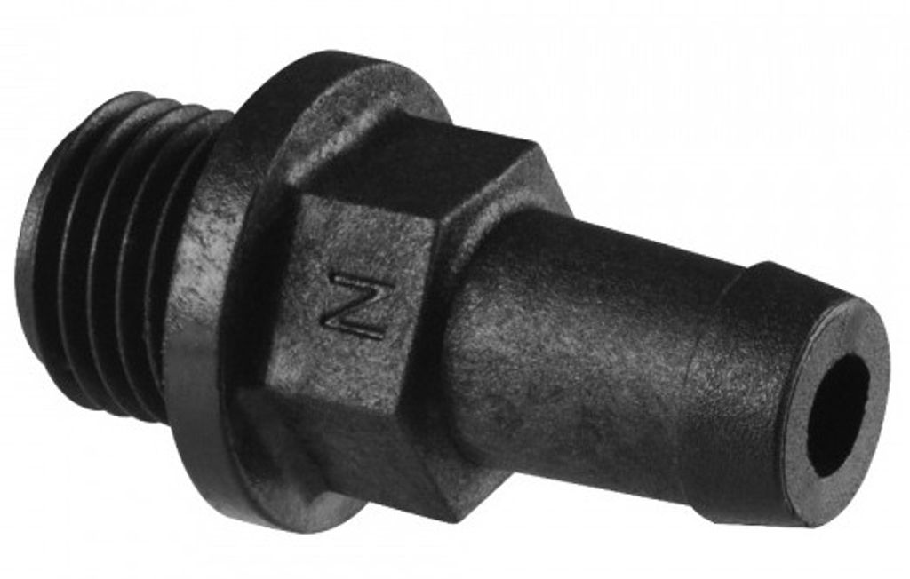 Beskrivning av Nippel (10 mm YD) till pumpar ur LP och WP serien från LX Whirlpool, ytterdiameter över gängorna 13 mm och gängstigning ca 1 mm