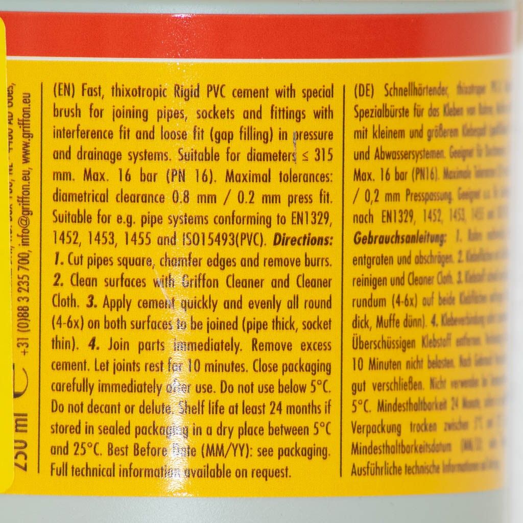Beskrivning av PVC Lim - Griffon Uni-100 XT Rigid PVC Cement