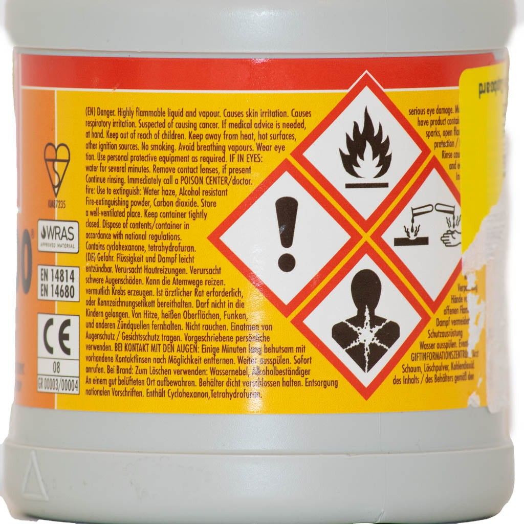 Används tillsammans med rengöringsmedel för bästa resultat.OBS! Ska rörsystemet användas för någon av nedan kemikalier, ska detta lim INTE användas: