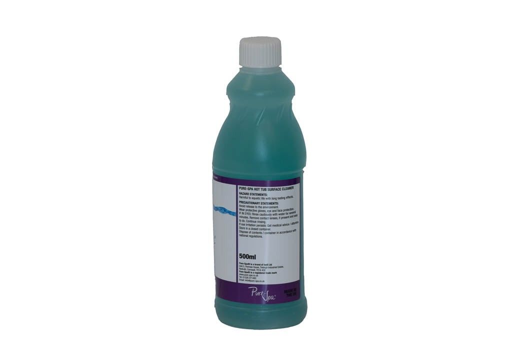 Pure-Spa, Hot Tub-ytrengöringsmedel är en antibakteriell spray för flera användningsområden som hjälper till att ta bort smuts, vattenlinjeavlagringar och badavlagringar från dina badkarsytor.