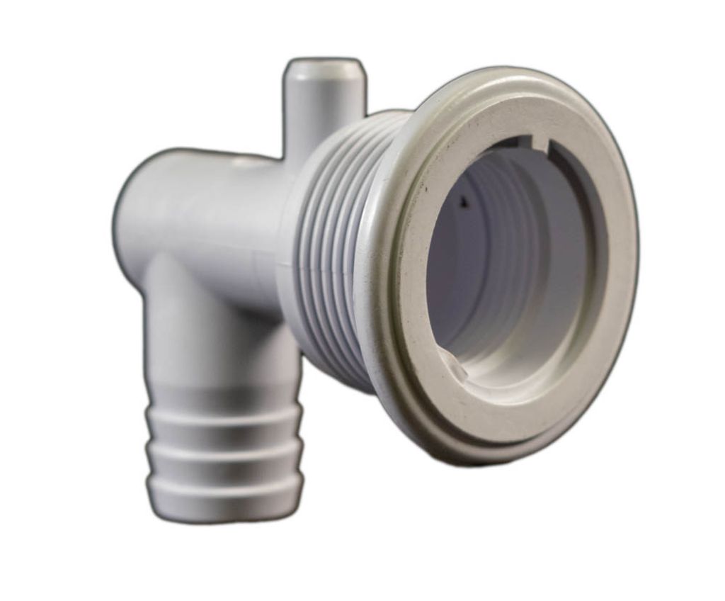 Detta jetuttag fungerar med alla inskruvade jetstrålar från Rising Dragons 2-tumssortiment. Sockeln passar in i skalets vägg och jeten skruvas in i uttaget.