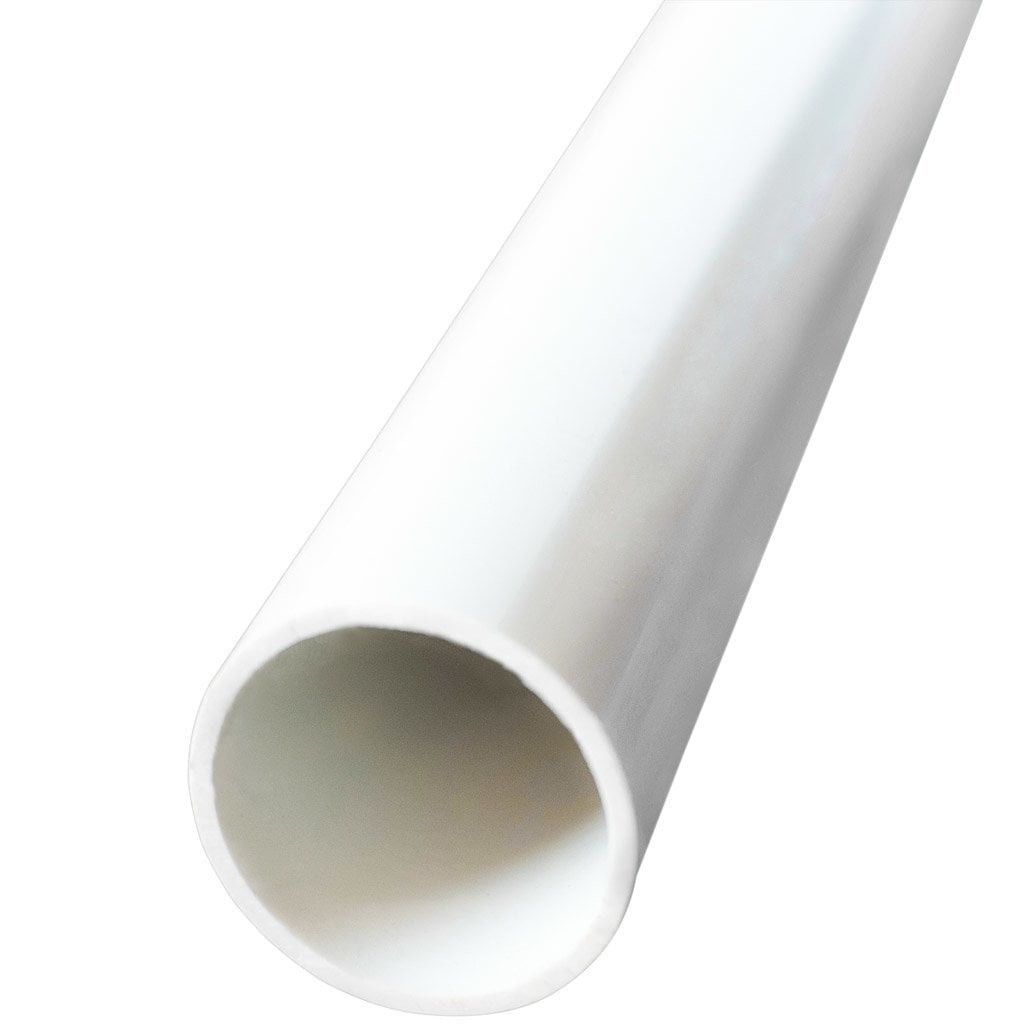 Styvt 1,5-tums rör, tillverkat av vit PVC eller ABS-plast. Priset är per meter.