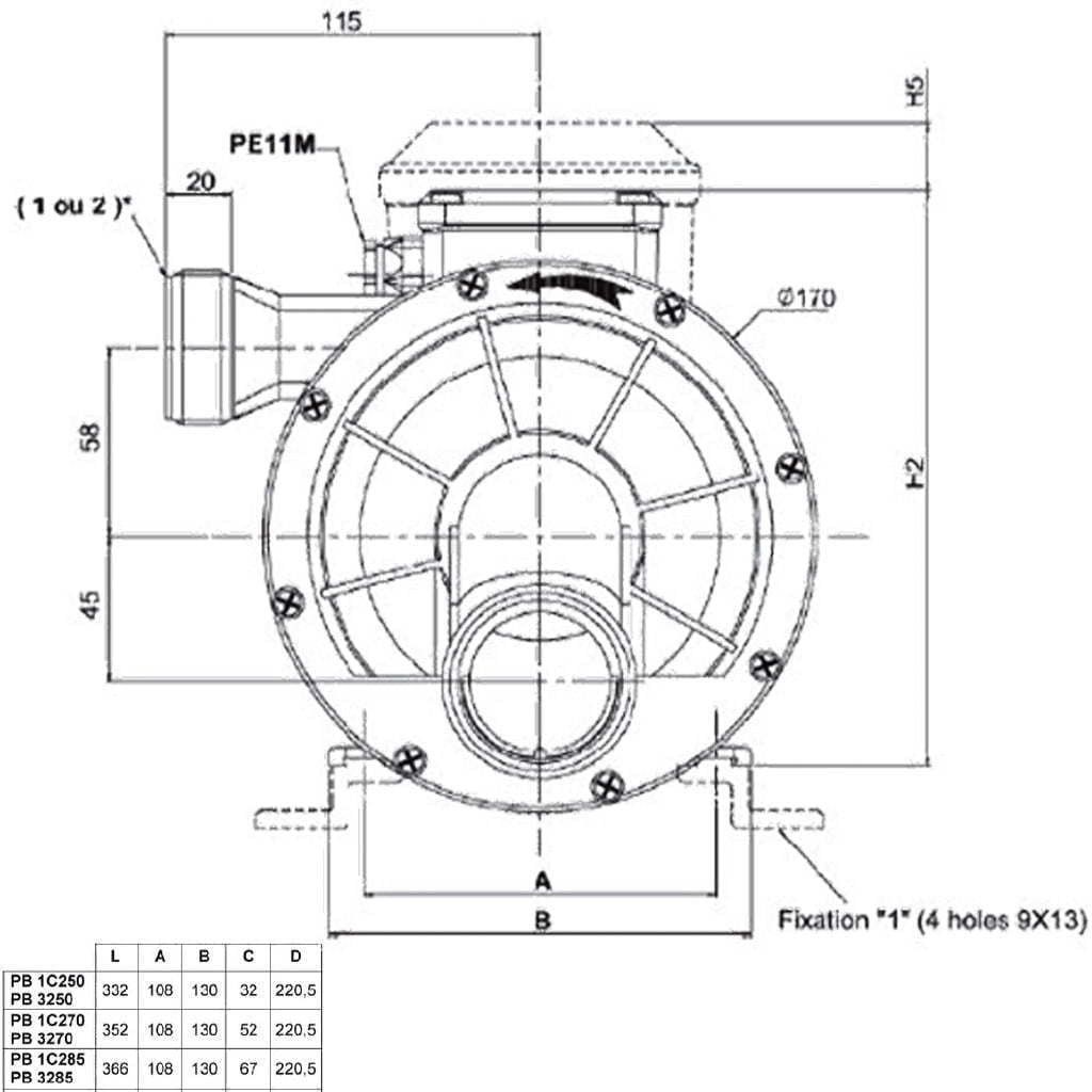 - PB1C 285 L4B (1150W); Hmax 15m; Qmax 22m3/h