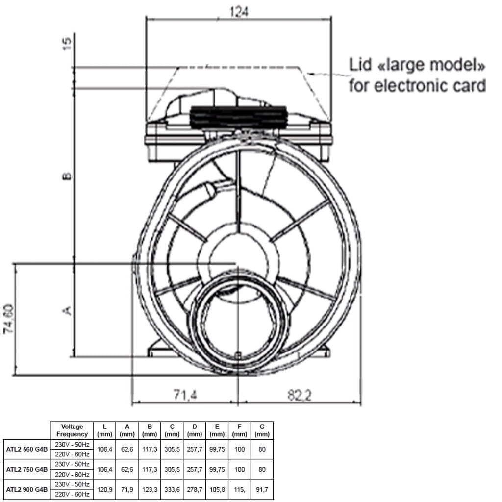 - PBY1C 260 N4B (750W); Hmax 8m, Qmax 22,5m3/h