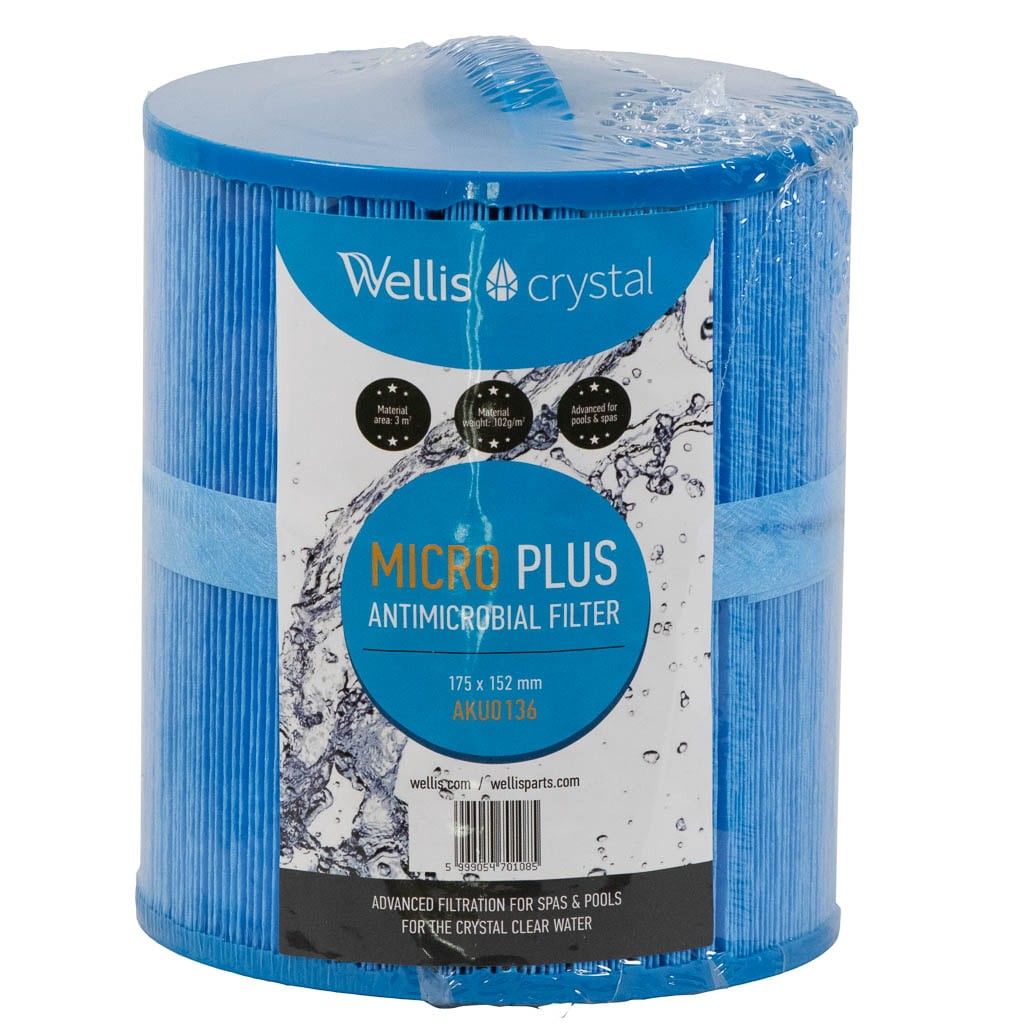 Beskrivning av Spa Filter L 175 mm; YD 152 mm; Wellis Antibakteriell; Fin gänga