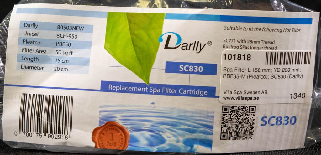 Beskrivning av Spa Filter L 150 mm; YD 200 mm; PBF35-M (Pleatco); SC830 (Darlly)