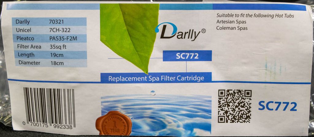 Beskrivning av Spa Filter L 190 mm; YD 183 mm; SC772 (Darlly)