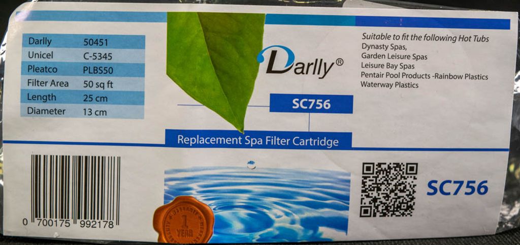 Beskrivning av Spa Filter L 255 mm; YD 135 mm; SC756 (Darlly)