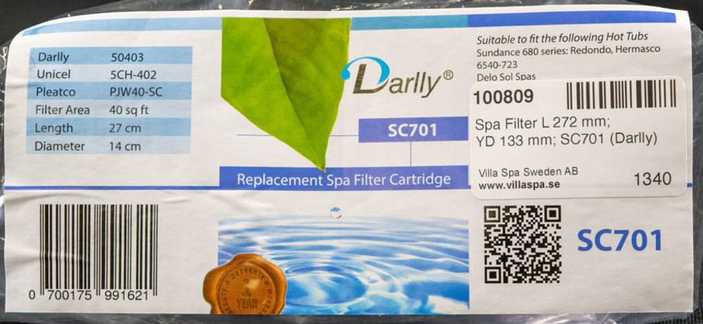 Beskrivning av Spa Filter L 272 mm; YD 133 mm; SC701 (Darlly)