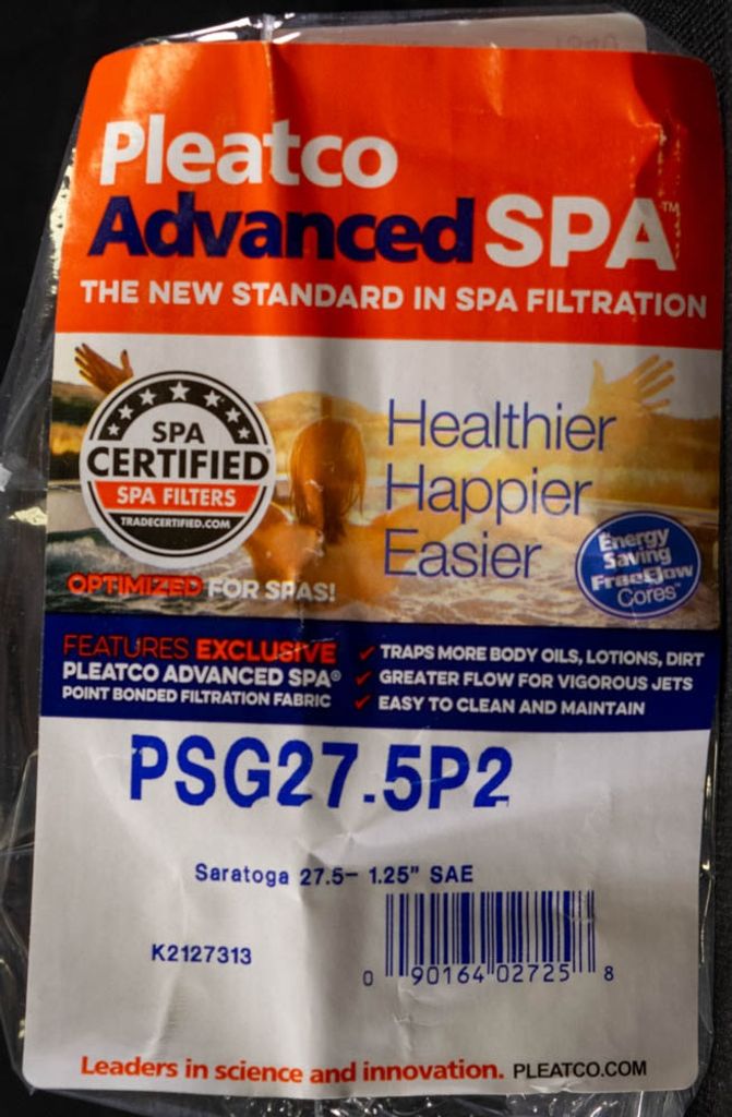 Beskrivning av Spa Filter L 289 mm; YD 121 mm; PSG27.5P2 (Pleatco)