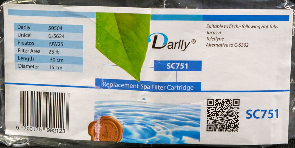 Beskrivning av Spa Filter L 302 mm; YD 146 mm; SC751 (Darlly)