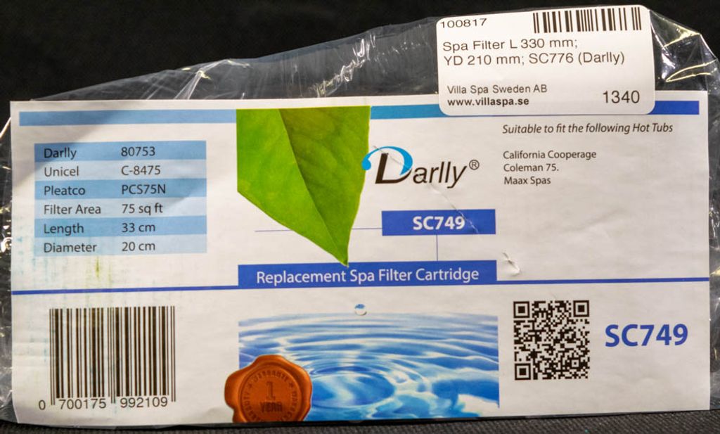 Beskrivning av Spa Filter L 330 mm; YD 210 mm; SC776 (Darlly)