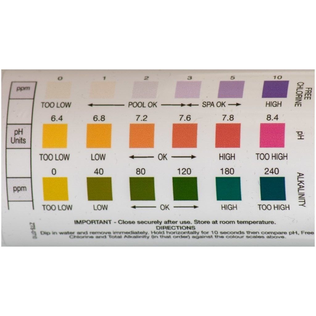 3-vägs teststickor (50 i förpackningen) är ett snabbt och enkelt sätt att testa klor, pH och totala alkalinitetsnivåer i din pool.