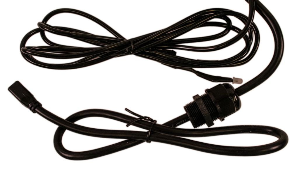 Den är utrustad med en AMP- kontakt, en packning, en kabelgenomföring och en driftindikator.